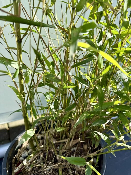 Beschneiden: Beschneiden Sie einmal im Jahr im Juni oder Juli, so halten Sie den Bambus in Form und können ihn kompakt halten.