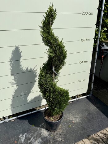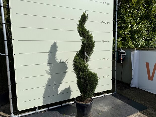 Diese Cupressocyparis Leylandii - Spiral hat eine Gesamthöhe von ca. 175 cm inklusive Topf.