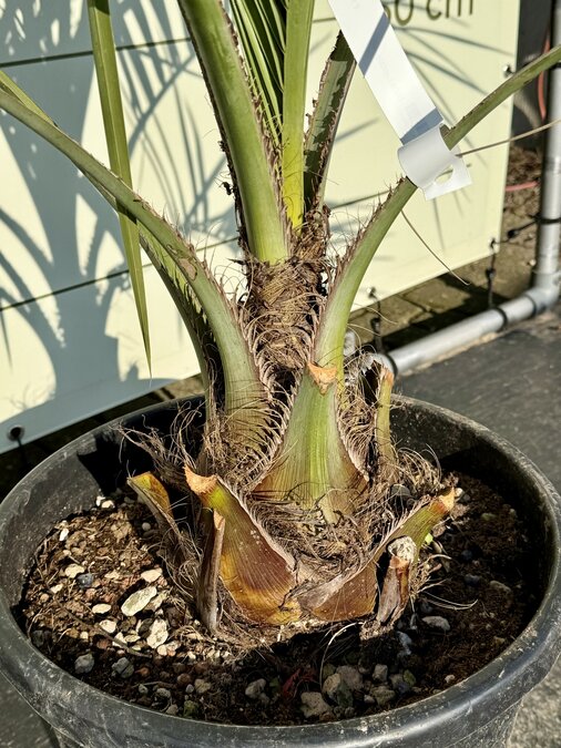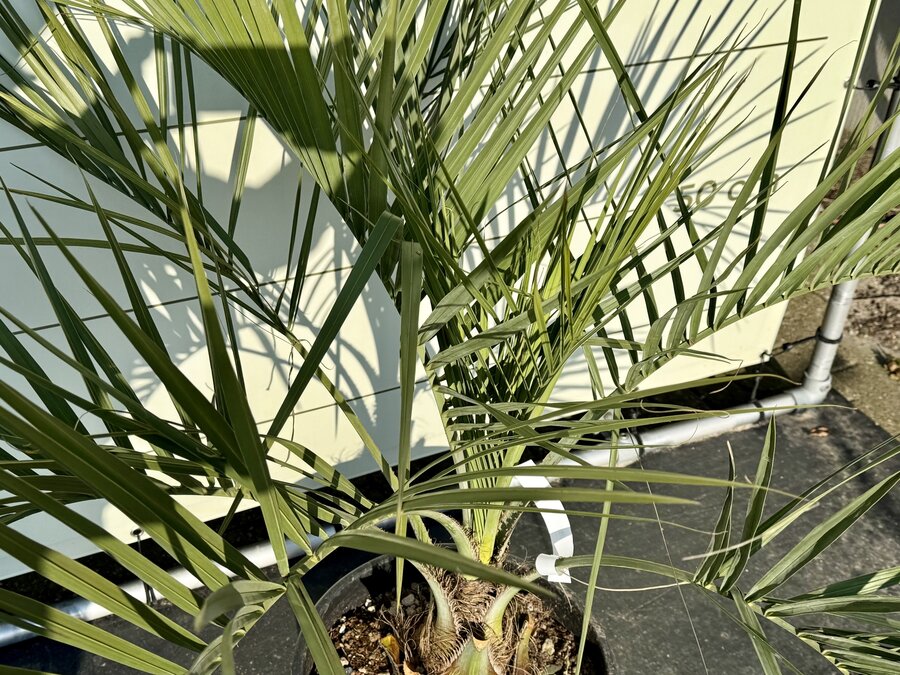 Diese Gelbe Palme, auch Butia Capitata genannt, hat einen dicken Stamm mit großen Blättern. Die Butia Capitata ist eine einigermaßen winterharte Palme. Die Palme kann bis -8 gehen und ist daher sehr gut geeignet.